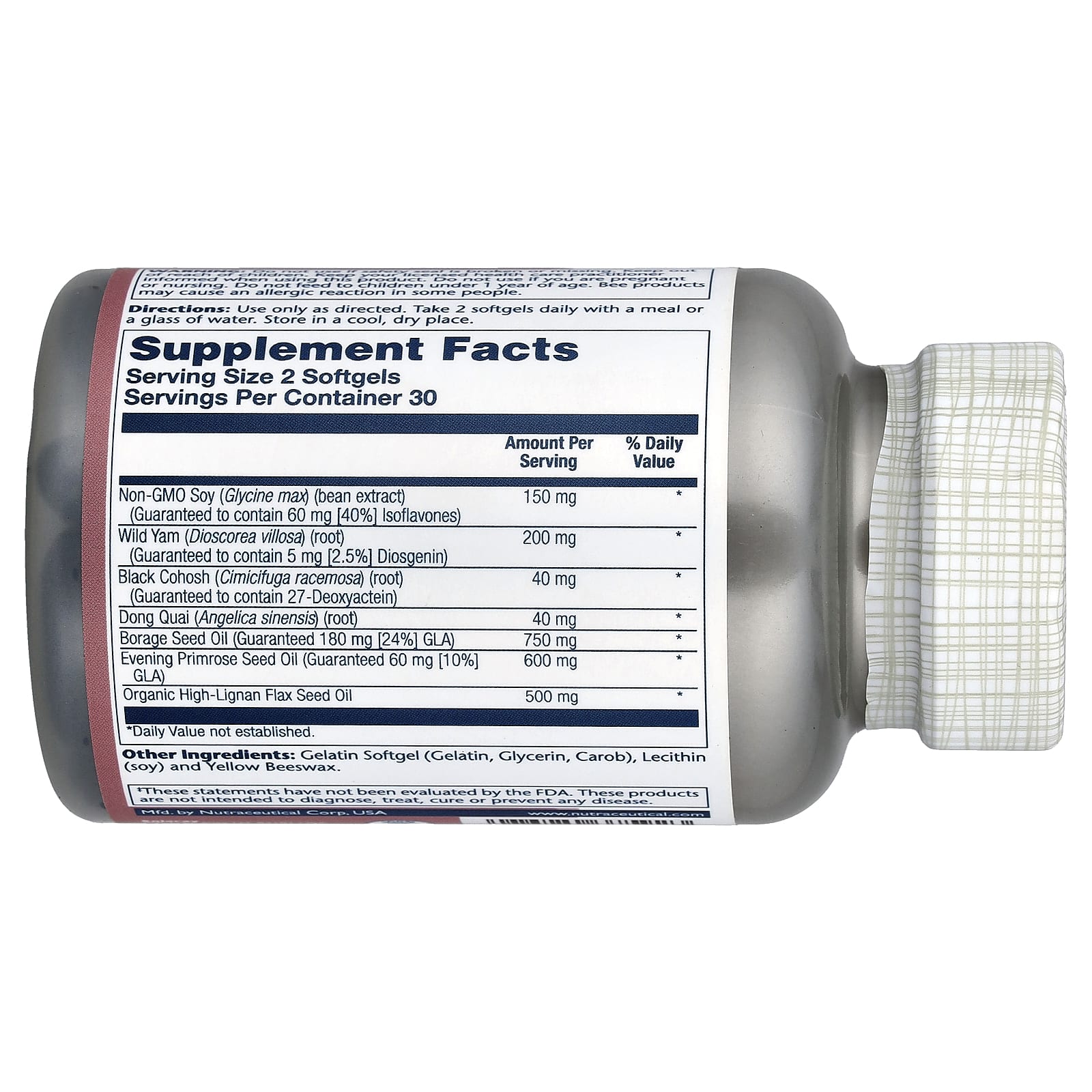Solaray Phytoestrogen™ + EFAs com Inhame Silvestre Acteia e Dong Quai 60 Cápsulas Softgel – Solaray Suplementos Saúde da Mulher Suporte à perimenopausa e à menopausa Ervas Dong Quai.
