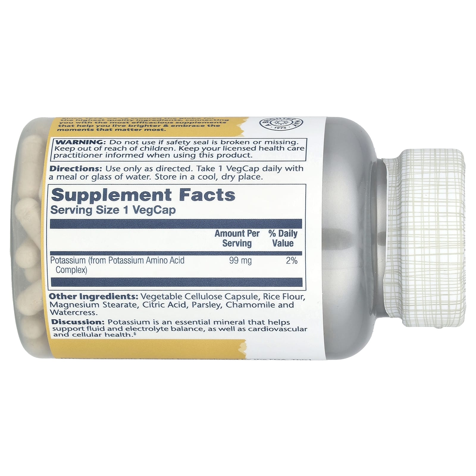 Solaray Potássio 99 mg 200 Capsulas Vegetais – Solaray Suplementos Minerais Potássio.