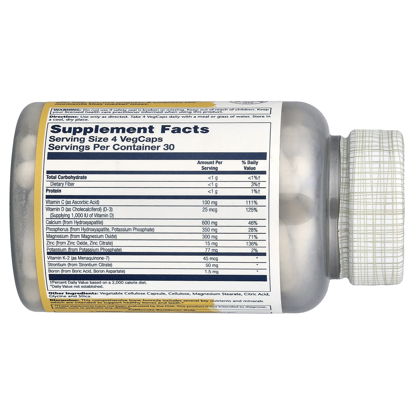 Análise: esta fórmula óssea completa inclui vários nutrientes e minerais essenciais que se destinam a promover ossos e dentes saudáveis.