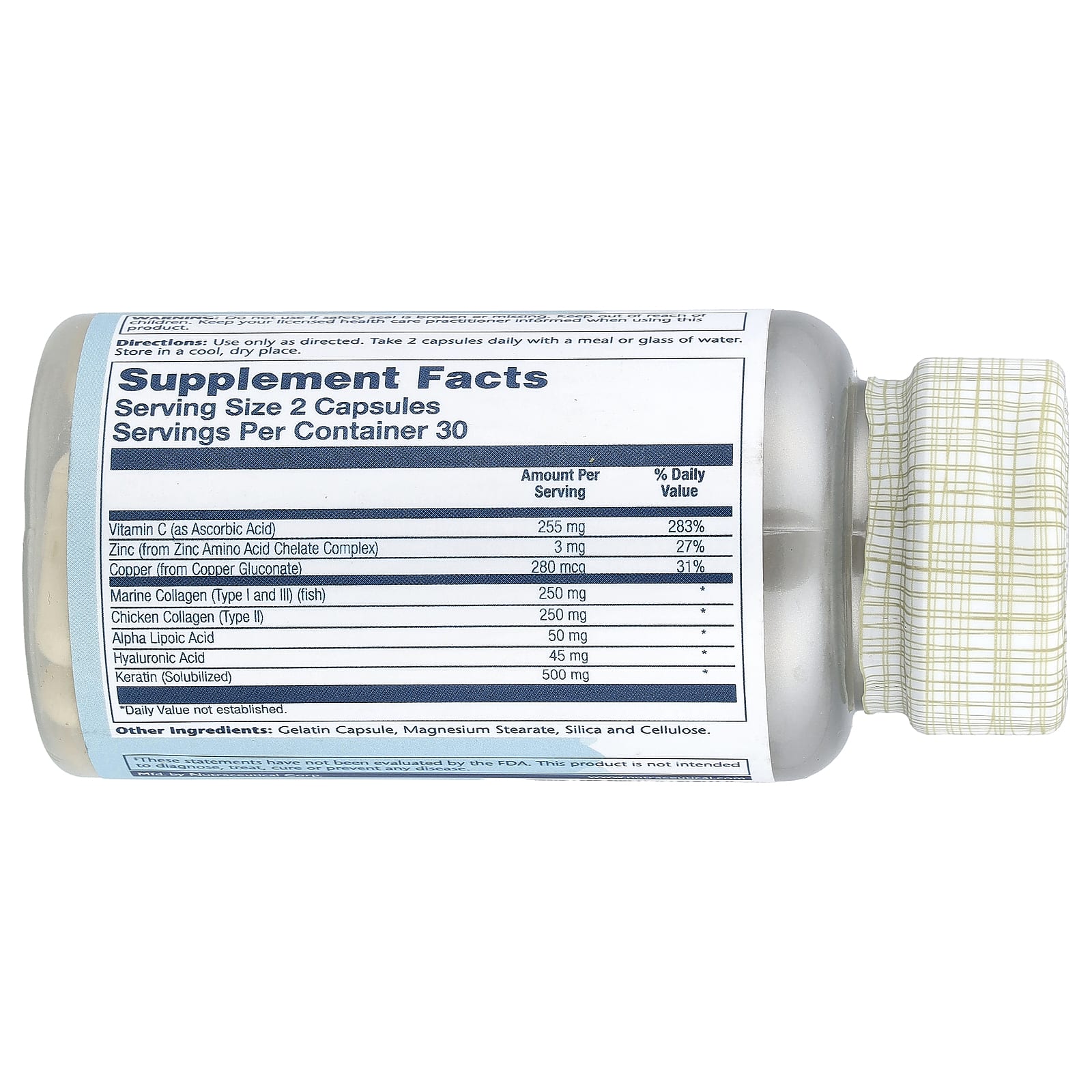 Solaray Queratina de Colágeno Tipo I II III 60 Cápsulas – Solaray Suplementos Ossos, Articulações e Cartilagem Colágeno, Suplementos.
