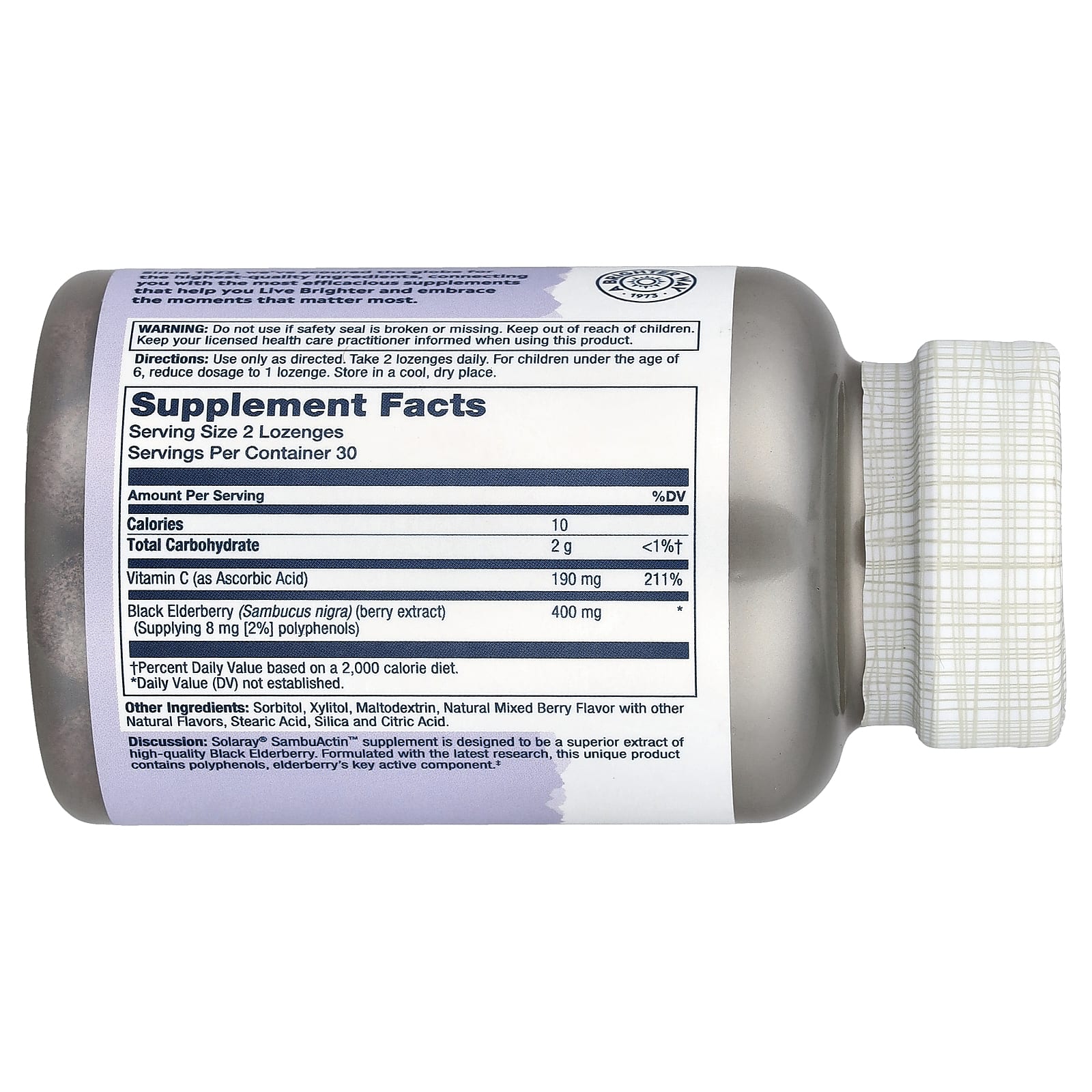 Solaray Sabugueiro Preto as Sambuactin™ Sabugueiro Natural 60 Pastilhas – Solaray Suplementos Ervas Sabugueiro – Sambucus.