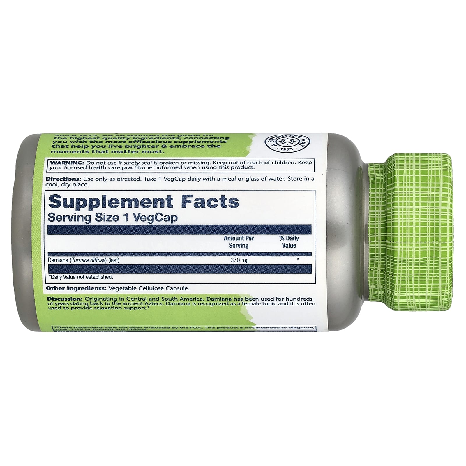 Solaray True Herbs Damiana 370 mg 100 Cápsulas VegCaps – Solaray Suplementos Ervas Damiana.