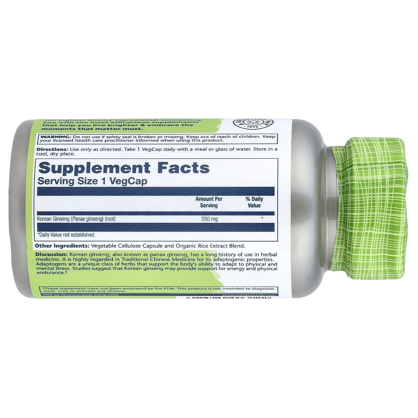 Solaray True Herbs Ginseng Coreano 550 mg 50 VegCaps – Solaray Suplementos Ervas Ginseng Ginseng Asiático.