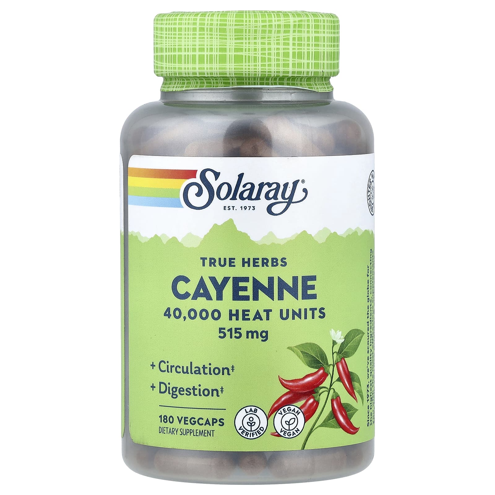 Solaray True Herbs Pimenta de Caiena 515 mg 180 VegCaps – Solaray Suplementos Ervas Suplementos de Pimenta Caiena.