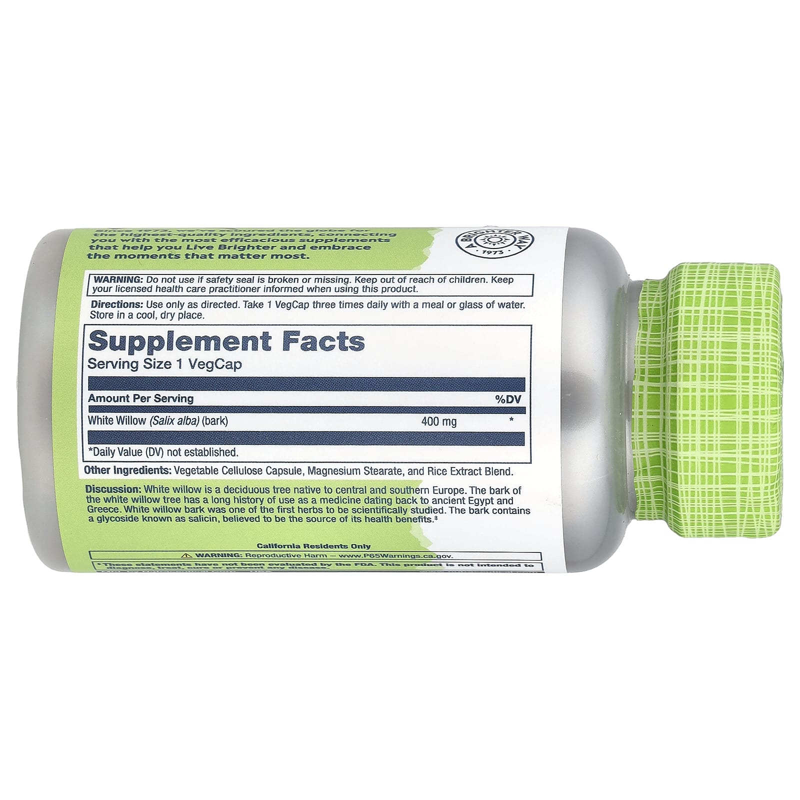 Solaray True Herbs Salgueiro Branco 400 mg 100 VegCaps – Solaray Suplementos Ervas Casca de Salgueiro Branco.