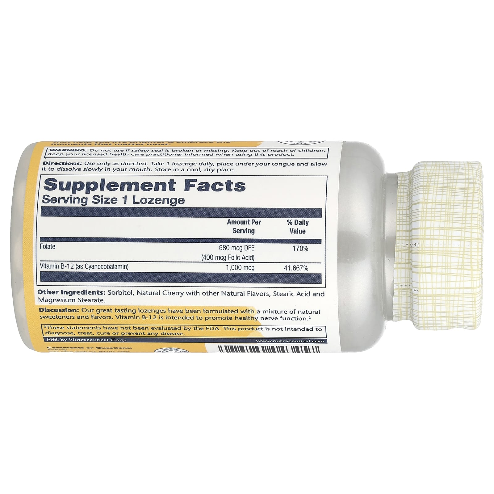 Solaray Vitamina B12 com Pastilhas de Ácido Fólico Cereja Natural 1.000 mg 90 Pastilhas – Solaray Suplementos Vitaminas Vitamina B Vitamina B12 (Cobalamina).