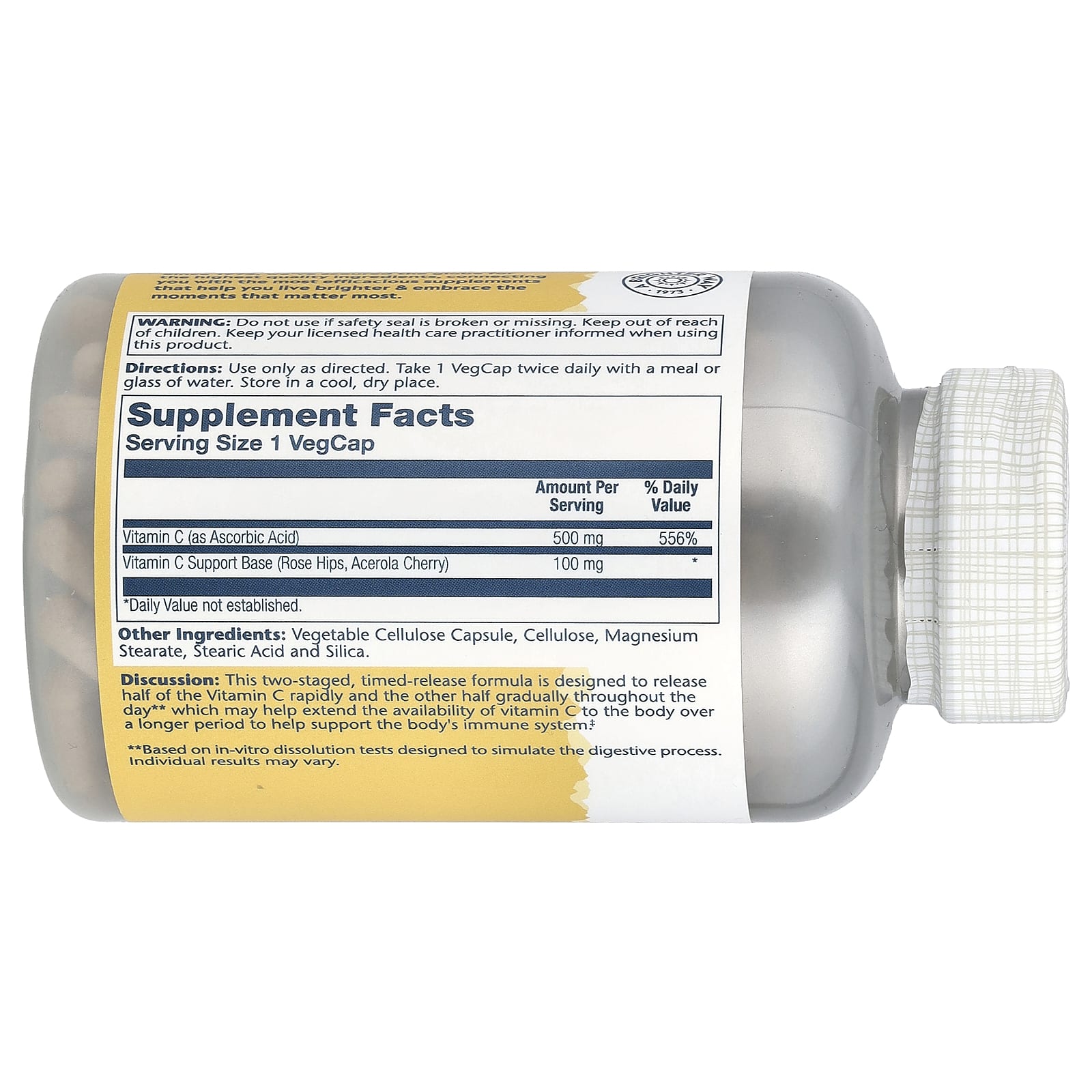 Solaray Vitamina C de Liberação Programada com Rosa-mosqueta e Acerola 500 mg 250 VegCaps – Solaray Suplementos Vitaminas Vitamina C Ácido ascórbico Saúde Gripe e Resfriado.