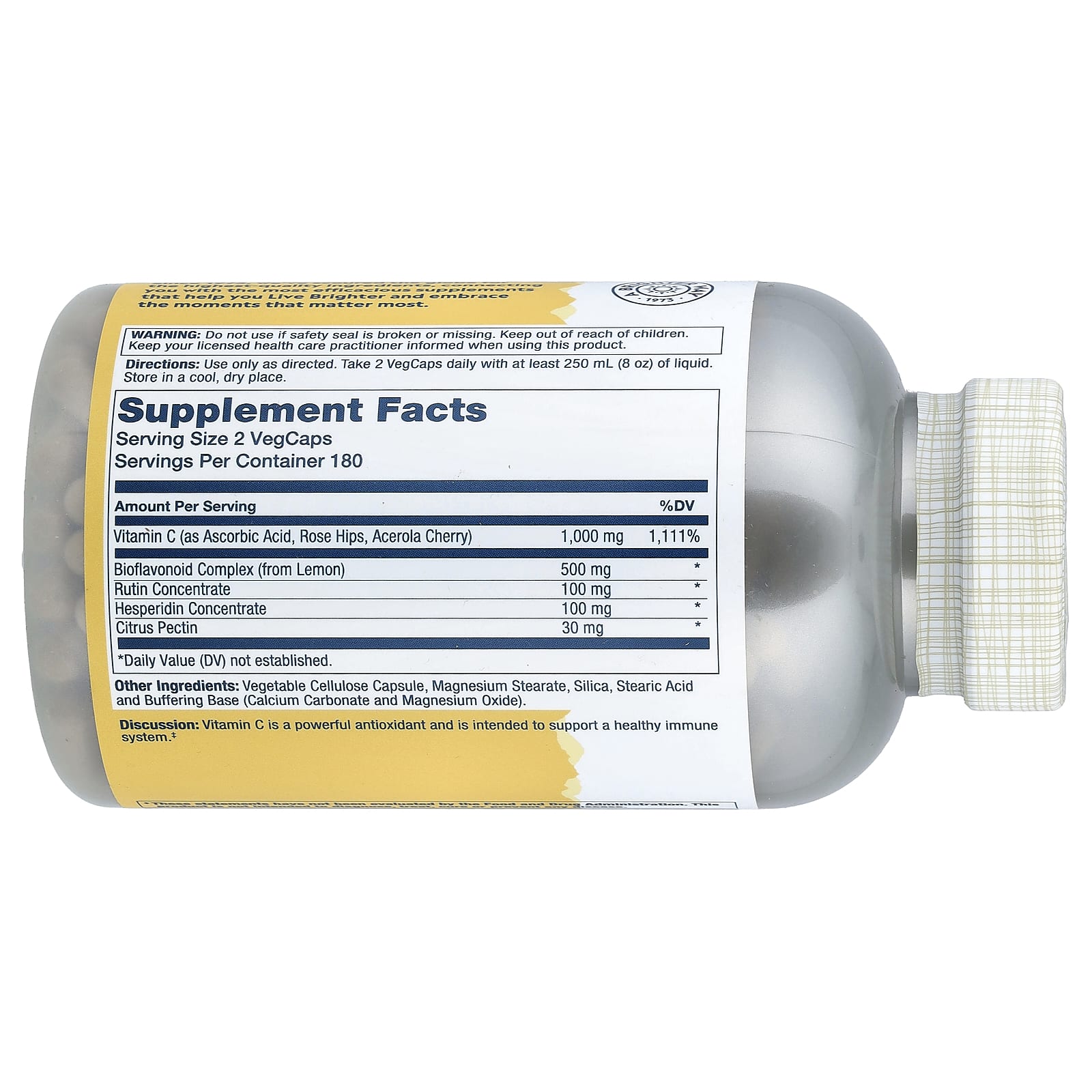 Solaray Vitamina C Super Bio Liberação Programada 360 VegCaps – Solaray Suplementos Vitaminas Vitamina C Saúde Gripe e Resfriado.