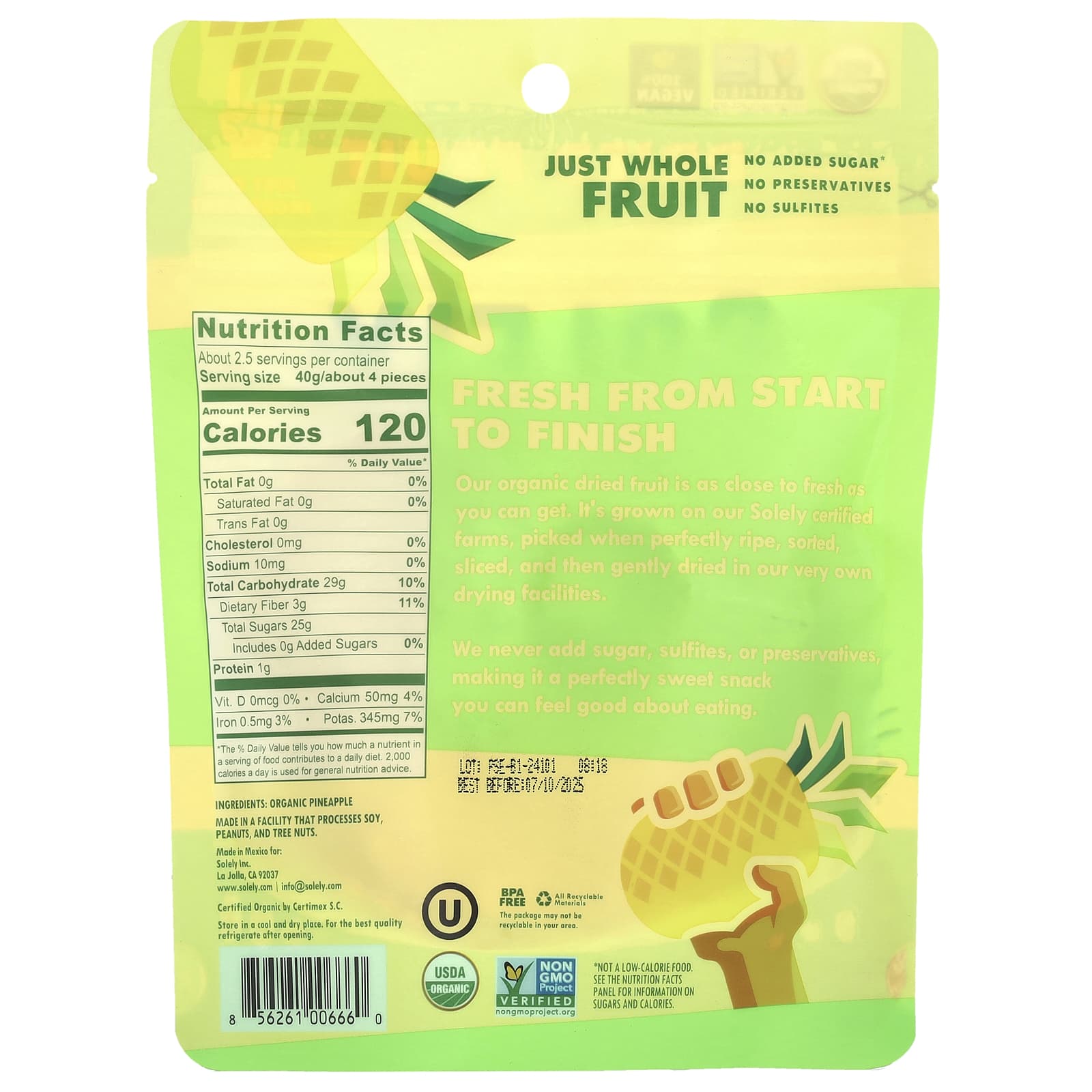 Solely Frutas Desidratadas Orgânicas Anéis de Abacaxi 100 g (35 oz) – Solely Alimentos Petiscos e lanches Frutas e Legumes Secos Abacaxis.