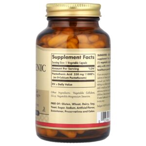 Solgar Ácido Pantotênico 550 mg 100 Cápsulas Vegetais – Solgar Suplementos Vitaminas Vitamina B Vitamina B5 (Ácido Pantotênico).