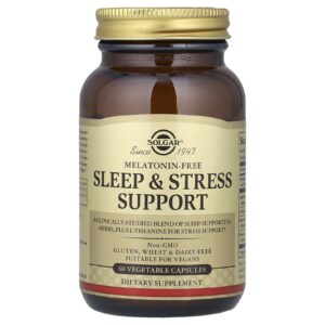 Solgar Auxílio para o Sono e o Estresse 60 Cápsulas Vegetais – Solgar Suplementos Sono Fórmulas Para Dormir Cérebro e Cognição Alívio do Estresse.