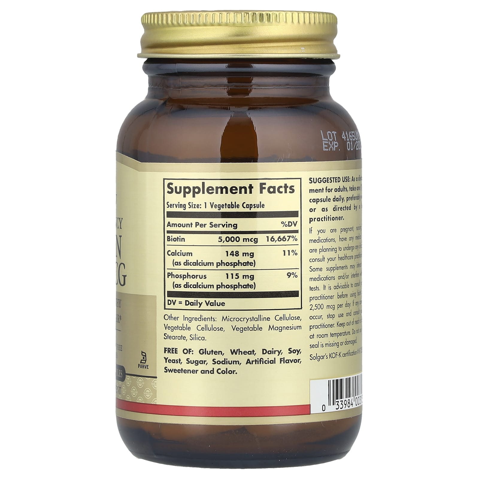 Solgar Biotina 50 Cápsulas Vegetais – Solgar Suplementos Cabelos, Pele e Unhas Vitamina B7 (Biotina).