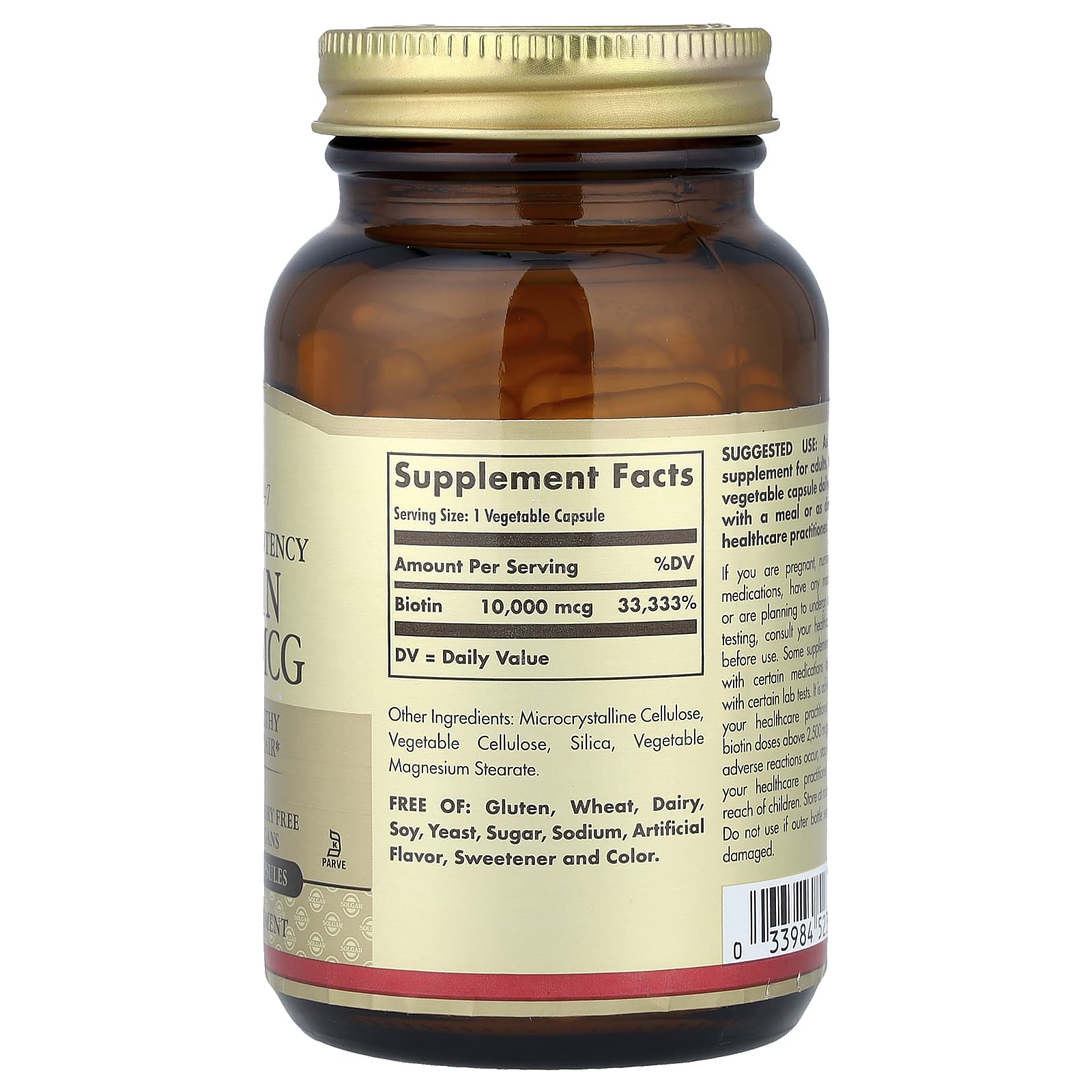 Solgar Biotina Potência Superalta 10.000 mcg 120 Cápsulas Vegetais