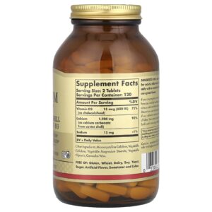 Solgar Cálcio “600” a partir de conchas de ostras com vitamina D3 240 comprimidos