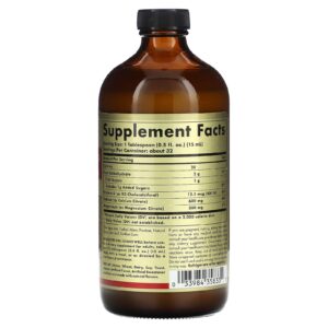Solgar Citrato de Cálcio e Magnésio Líquido com Vitamina D3 Morango Natural 473 ml (16 fl oz) – Solgar Suplementos Minerais Cálcio.