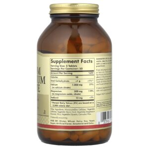 O cálcio fornece os componentes essenciais que ajudam a manter ossos e dentes fortes e saudáveis. Ela também auxilia os sistemas musculoesquelético e nervoso e está envolvida na regulação dos ritmos cardíacos. O magnésio ajuda a regular o transporte de cálcio e estimula a secreção de calcitonina, um hormônio que auxilia no influxo de cálcio para os ossos. Ele desempenha uma função importante na formação de proteínas e na função muscular saudável. Esta formulação contém a forma de citrato de cálcio altamente absorvível.