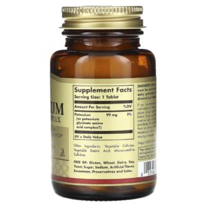 Solgar Complexo de Aminoácidos de Potássio 100 Comprimidos (99 mg por Comprimido) – Solgar Suplementos Minerais Potássio.