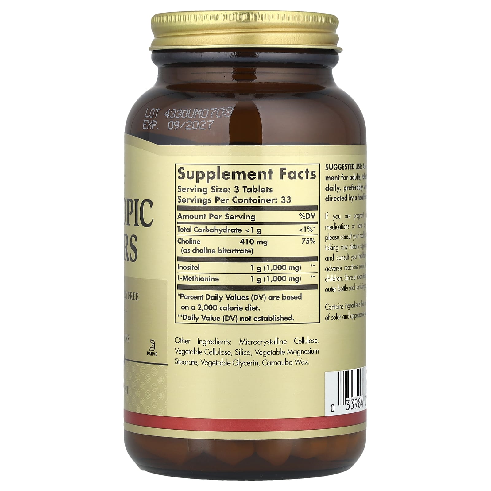 Solgar Fatores Lipotrópicos 100 Comprimidos – Solgar Suplementos Controle de peso Fórmulas Dietéticas Vitaminas Vitamina B Inositol.