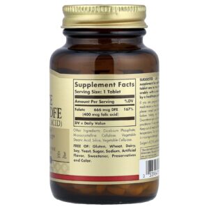 Solgar Folato 666 mcg DFE 250 Comprimidos – Solgar Suplementos Vitaminas Vitamina B Vitamin B9 (Folate – Folic Acid).
