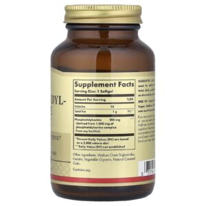As Cápsulas Softgel de Fosfatidilserina de 200 mg da Solgar são um suplemento premium para a saúde do cérebro derivado de fontes naturais. Os níveis de fosfatidilserina no cérebro podem diminuir com a idade e, por isso, é importante suplementar diariamente, ajudando a repor esse nutriente naturalmente encontrado nas membranas celulares do cérebro, para ajudar na função cerebral.