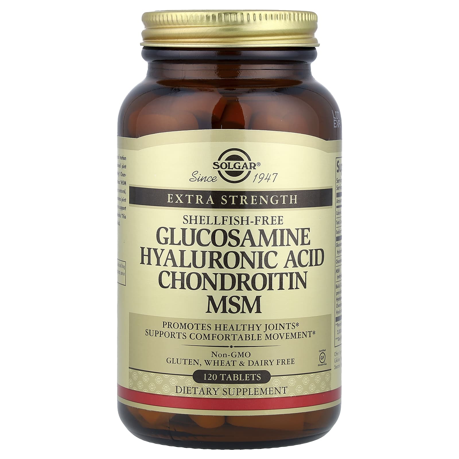 Solgar Glicosamina Ácido Hialurônico Condroitina e MSM 120 Comprimidos – Solgar Suplementos Ossos, Articulações e Cartilagem Fórmulas de Glucosamina.