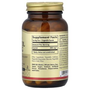Solgar Inositol 500 mg 100 Cápsulas Vegetais – Solgar Suplementos Vitaminas Vitamina B Inositol.