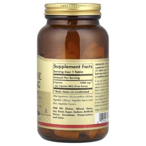 Solgar L-Lisina Forma Livre 1.000 mg 100 Comprimidos – Solgar Suplementos Aminoácidos Lisina Saúde Gripe e Resfriado.