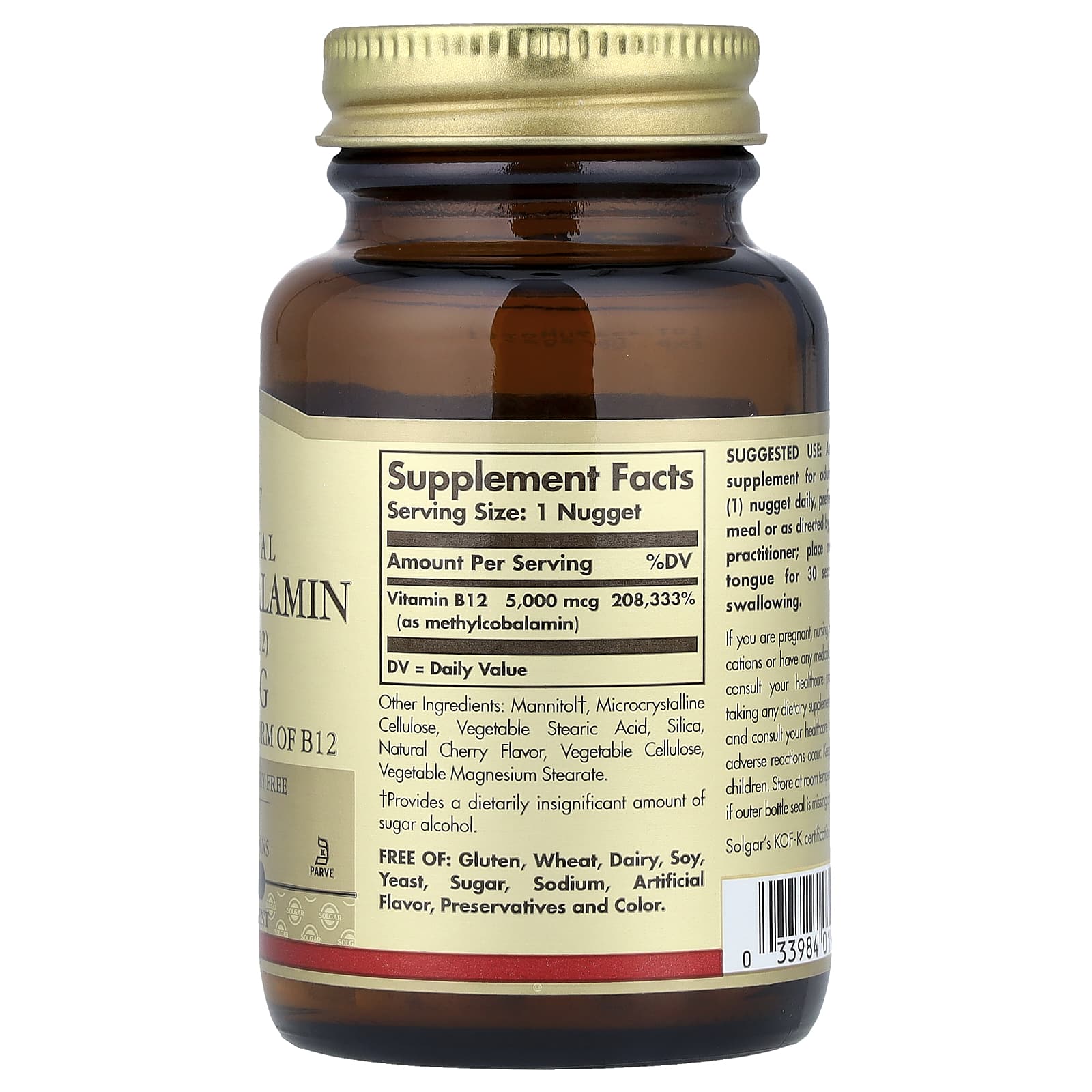 Solgar Metilcobalamina Sublingual (Vitamina B12) 5.000 mcg 60 Nuggets – Solgar Suplementos Vitaminas Vitamina B Vitamina B12 (Cobalamina) Metilcobalamina.