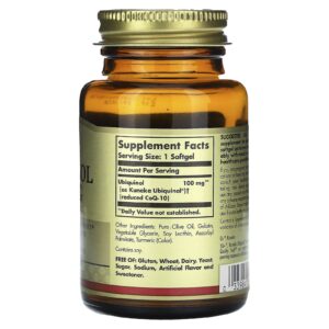 A Coenzima Q-10 (como ubiquinona) desempenha várias funções importantes para reforçar a saúde do corpo. Ubiquinol (o formato reduzido de CoQ-10) fornece suporte antioxidante avançado. A suplementação com Ubiquinol fornece ao seu corpo uma forma de CoQ-10 preparada para combater os radicais livres. Os radicais livres podem causar estresse oxidativo e danificar as células. A Ubiquinol 100 mg da Solgar® é fornecida em cápsulas softgel à base de óleo para garantir uma ótima absorção e assimilação.
