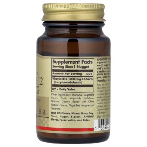Solgar Vitamina B 12 Sublingual 1.000 mcg 100 Cápsulas – Solgar Suplementos Vitaminas Vitamina B Vitamina B12 (Cobalamina).