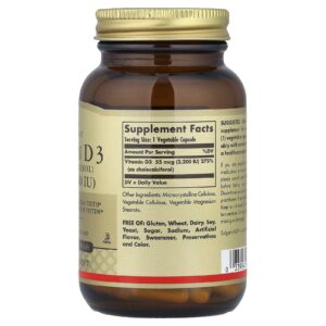 Solgar Vitamina D3 55 mcg (2.200 UI) 100 Cápsulas Vegetais – Solgar Suplementos Vitaminas Vitamina D.