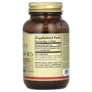 Solgar Vitamina D3 (Colecalciferol) 250 mcg (10.000 UI) 120 Cápsulas Softgel – Solgar Suplementos Vitaminas Vitamina D.