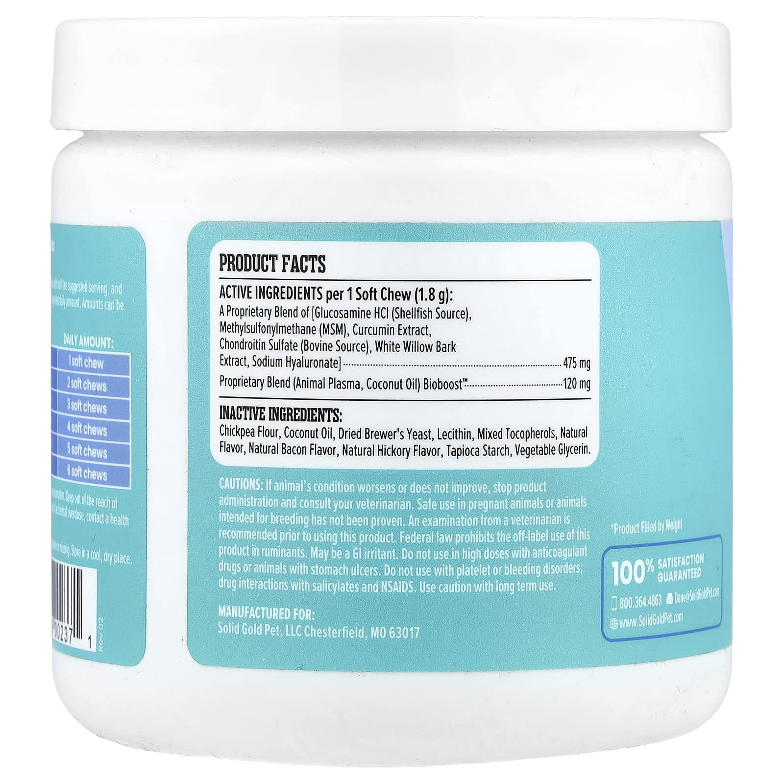 Solid Gold Leaps & Hounds™ Suplemento de Auxílio às Articulações Para Cães Bacon Defumado 120 Cápsulas Mastigáveis 216 g (76 oz)
