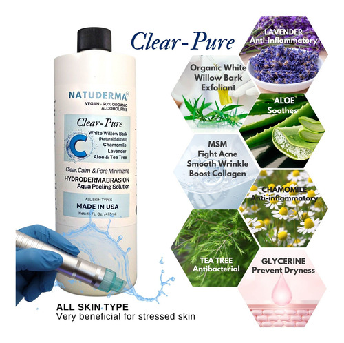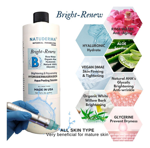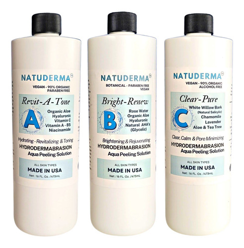 Todas as soluções de hidrodermoabrasão da Natudermas são orgulhosamente fabricadas no Brasil da América, formuladas e testadas por especialistas faciais. Eles já estão sendo usados por muitos salões, spas e consultórios médicos. Essas soluções Hydro são feitas em pequenos lotes com ingredientes premium e naturais. Não contém substâncias químicas que possam causar efeitos negativos à saúde, não contém ftalatos e não contém parabenos. Solução A Revita-A-Tone: Solução revitalizante, antioxidante, hidratante e tonificante, limpa profundamente a pele enquanto revitaliza com vitaminas, hidrata com aloe e hialurônico, nutre e fornece brilho e tonificação com uma fórmula botânica. Adequado para todos os tipos de pele. Isso deixará a pele totalmente hidratada, tonificada e brilhante. Solução B Bright-Renew: Solução iluminadora e rejuvenescedora: limpa e fornece uma esfoliação suave, combina os benefícios esfoliantes do ácido glicólico com a poderosa essência botânica para apoiar o processo de renovação natural da pele. Visando linhas finas, manchas escuras, cor de pele irregular ou textura assustadora. Fórmula balanceada perfeita com aloe hidratante e rejuvenescedor, água de rosas e hialurônico; com uma mistura botânica iluminadora e protetora, deixando a pele mais macia e suave. Adequado para todos os tipos de pele, muito benéfico para peles maduras, secas e assustadoras. Solução C Clear-Pure: Solução hidrofacial transparente, calma e minimizadora de poros. Alvo: poros dilatados, estressados e problemáticos, propensos a erupções cutâneas. Limpe, esfolie suavemente, enquanto ajuda a desobstruir os poros, acalmar, equilibrar e purificar, com casca de salgueiro branco, salicílico natural, com camomila, lavanda e melaleuca. Adequado para todos os tipos de pele, mesmo a pele sensível e propensa a erupções oleosas. Cada frasco contém 16 onças, você pode realizar até 18 tratamentos por frasco, um total de 54 Tx. por conjunto. Quando usado como infusão de pulverizador de oxi, você pode realizar 94 Tx. por frasco, 282 por conjunto. Você pode usar essas soluções hidráulicas com qualquer hidrodermoabrasão ou máquina de peeling aquático – solução de hidrodermoabrasão, soro aqua peeling, solução para microdermoabrasão úmida, 3 frascos de 16 onças cada, soro natuderma hydro – sem produtos químicos agressivos. Sem ftalatos, sem parabenos, sem substâncias químicas que possam causar efeitos negativos à saúde. — Feito nos Brasil. Todas as soluções de hidrodermoabrasão da Natudermas são orgulhosamente fabricadas no Brasil da América, formuladas e testadas por especialistas faciais. Feito com ingredientes premium e naturais. – USE COM QUALQUER MÁQUINA HIDRÁULICA. Todas as soluções de hidrodermoabrasão da Natudermas são compatíveis com qualquer máquina de hidrodermoabrasão, microdermoabrasão úmida, peeling aquático ou pulverizador de oxi. – ATENDA A TODAS AS PREOCUPAÇÕES DA PELE. Solução A. Hidratação e revitalização da pele facial. B: Facial clareador e antirrugas e C: para pele sensível, propensa a acne e poros dilatados – MAIS TRATAMENTOS HIDRÁULICOS POR FRASCO. Cada frasco contém 16 onças de solução, você pode realizar até 18 tratamentos por frasco, um total de 54 tratamentos por conjunto. Quando usado como infusão de pulverizador de oxi, você pode realizar 94 tratamentos por frasco, 282 por conjunto. – Direção: Não há necessidade de diluir. Use até 30 ml com Aqua Peel ou Máquina de Hidrodermoabrasão ou até 5 ml para rosto e decote usando um aerógrafo de oxigênio.