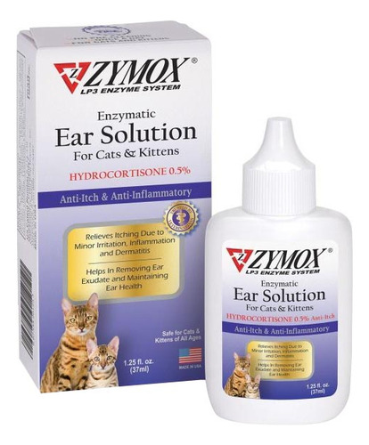 A solução enzimática de ouvido ZYMOX com 0,5% de hidrocortisona para gatos e gatinhos contém uma combinação patenteada de enzimas para aliviar infecções de ouvido e manter a saúde do ouvido. Veterinário recomendado e aprovado pela TICA, The International Cat Association. A solução enzimática de ouvido ZYMOX com 0,5% de hidrocortisona promove ouvidos saudáveis e alivia a coceira devido a pequenas inflamações, dermatites e outras irritações cutâneas menores. A tecnologia avançada da ZYMOX Ear Solutions torna o cuidado dos ouvidos de um animal de estimação fácil e sem medo, com a redução do toque em ouvidos sensíveis. Não contém antibióticos para ingredientes agressivos. Para uso em gatos ou gatinhos de qualquer idade. Combinação patenteada de enzimas para aliviar infecções de ouvido e manter a saúde auditiva. Veterinário recomendado e aprovado pela TICA (Associação Internacional de Gatos) Promove ouvidos saudáveis e alivia a coceira devido a pequenas inflamações, dermatites e outras irritações cutâneas menores. Não contém antibióticos para ingredientes agressivos. Para uso em gatos ou gatinhos de qualquer idade