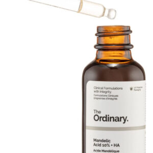 O ácido mandélico esfoliante comum 10% + HA com AHA e ácido hialurônico (30 ml) – O ácido mandélico esfolia a pele acelerando a renovação celular, o que, por sua vez, melhora a textura geral e o tom da pele – Se sua pele for opaca e tiver uma textura áspera, ajudará a suavizar a superfície e iluminar a pele, ao mesmo tempo em que combate linhas finas e rugas – É mais suave tipos de pele sensíveis, pois tem um tamanho de molécula maior em comparação com a maioria dos outros AHAs, o que não permite que ela penetre tão profundamente, tornando-a menos irritante para aqueles com pele reativa – Suave e adequada para todos os tipos de pele, incluindo a pele mais sensível – O produto não tem selo de segurança