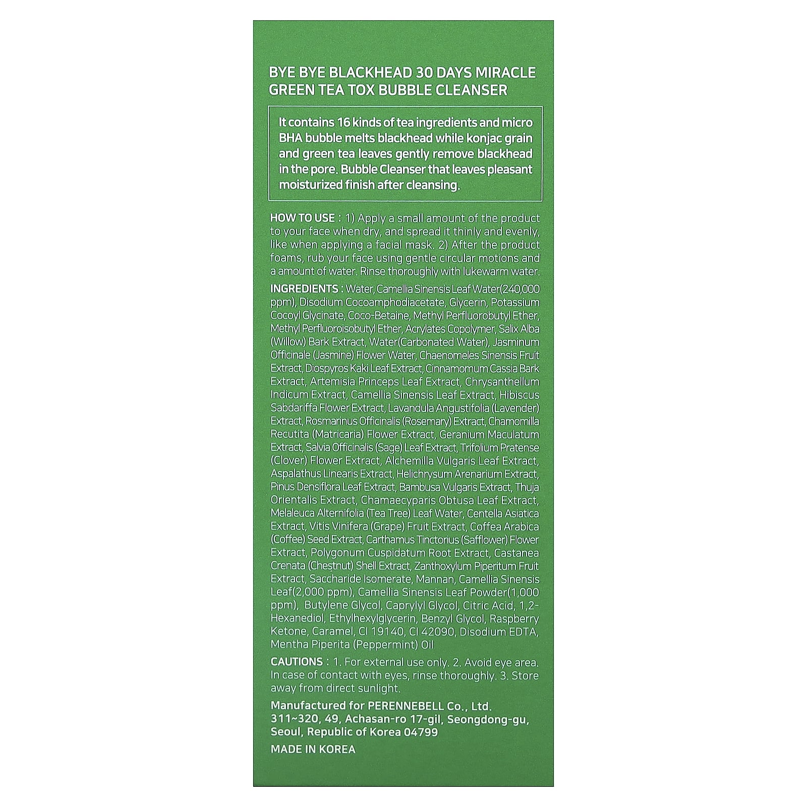Ele contém 16 tipos de ingredientes de chá: a microbolha de BHA derrete o cravo, enquanto o grão konjac e as folhas de chá verde removem suavemente o cravo dos poros. Loção de Limpeza com Bolhas que deixa uma sensação agradável e hidratada após a limpeza.