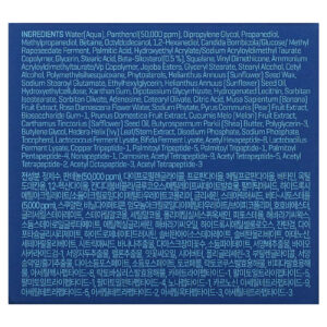 Água [aqua], pantenol [50.000 ppm], dimetildietilenoglicol, propanediol, metilpropanediol, betaína, octildodecanol, 1,2-hexanediol, fermento de candida bombicola / glicose / colza, ácido palmítico, copolímero de acriloildimetiltaurato de sódio e acrilato de hidroxietila, glicerina, ácido esteárico, beta-sitosterol [0,5%], esqualano, dimeticona de vinil, ammonium acryloyldimethyltaurate/vp copolymer, jojoba esters, monoestearato de glicerila, álcool estearílico, álcool cetílico, polymethylsilsesquioxane, fitoesteróis, cera da semente de Helianthus annuus [girassol], estearoil glutamato de sódio, ethylhexylglycerin, óleo da semente de Helianthus annuus [girassol], hidroxietilcelulose, goma xantana, dipotassium glycyrrhizate, hydrogenated lecithin, isoestearato de sorbitana, sorbitan olivate, adenosina, cetearyl olivate, ácido cítrico, extrato da fruta de musa sapientum [banana], água da flor de Rosa damascena, fitato de sódio, extrato da fruta de Pyrus communis [pera], goma-1 de biossacarídeo, extrato da fruta de prunus domestica, extrato da fruta de Cucumis melo [melão], óleo da semente de Carthamus tinctorius [cártamo], manteiga de butirospermum parkii [karité], poliglicerina-3, butilenoglicol, extrato de folha / caule de hedera helix [ivy], fosfato dissódico, fosfato de sódio, tocoferol, lisado do fermento de Lactococcus, lisado do fermento de bífida, acetyl hexapeptide-8, lisado do fermento de lactobacilos, tripeptídeo-1 de cobre, palmitoyl tripeptide-5, palmitoyl tripeptide-1, palmitoil pentapeptídeo-4, nonapeptide-1, carnosina, acetil tetrapeptídeo-9, acetil tetrapeptídeo-5, acetil tetrapeptídeo-2, acetil octapeptídeo-3, acetil tetrapeptídeo-3.