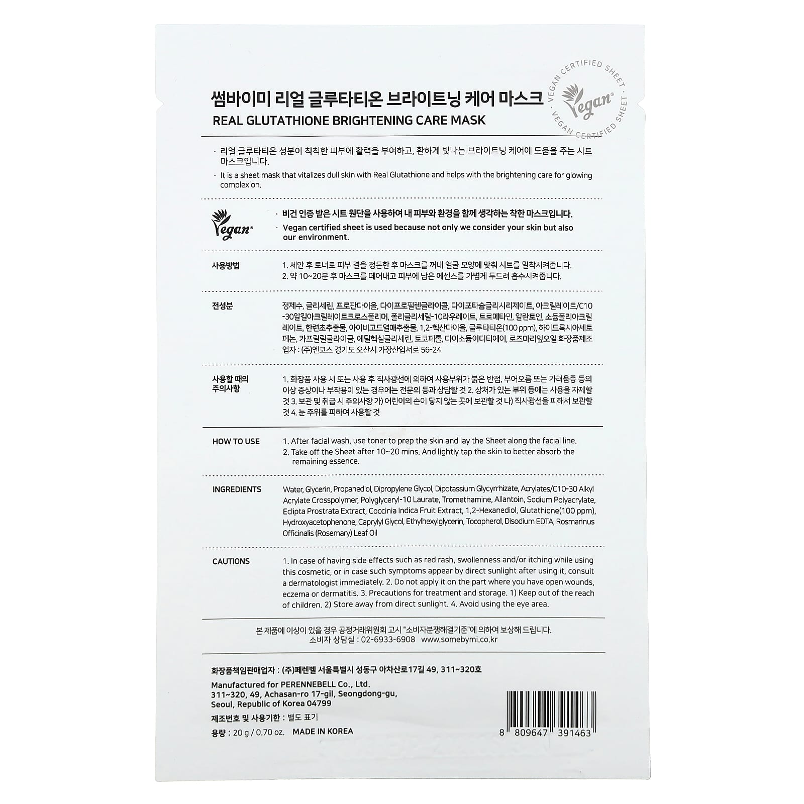 SOME BY MI Glutationa Real Máscara de Beleza Clareadora 1 Folha 20 g (07 oz) – SOME BY MI Beleza Máscaras Faciais de Beleza Máscaras Faciais Máscaras em folha K-Beauty.
