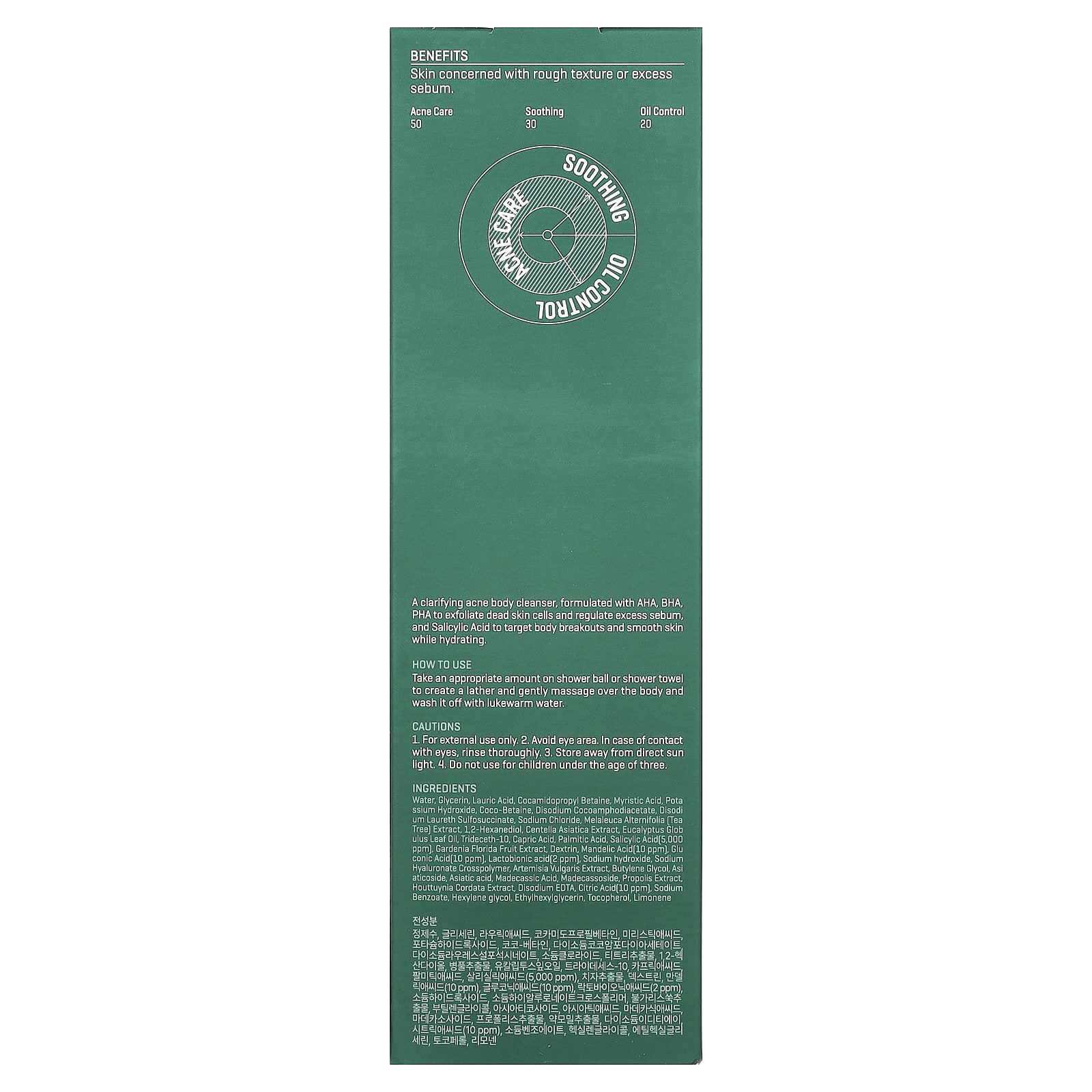 Um sabonete líquido corporal para acne com função clareadora, formulado com AHA, BHA, PHA, para esfoliar as células mortas da pele e regular o excesso de oleosidade, e Ácido Salicílico, que combate as erupções corporais e, ao mesmo tempo, suaviza e hidrata a pele.