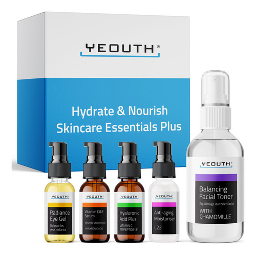 Os conjuntos e kits de cuidados com a pele YEOUTH são presentes de beleza perfeitos para mulheres, embalados com tônico YEOUTH para rosto, soro Vit C para rosto, soro de ácido hialurônico, gel sob os olhos e hidratante facial ultra hidratante diurno e noturno. Tudo o que você precisa para sua rotina perfeita de cuidados com a pele. É um kit facial completo para cuidados com a pele feminina em casa para seu regime de pele matinal e noturno! Primeiro, use o tônico facial como um tônico facial principal para preparar sua pele para outros produtos ou maquiagem. Durante o dia, use nosso soro de vitamina C para melhorar a aparência da sua pele. Nosso creme diurno/noturno pode ser aplicado como hidratante para manter a pele hidratada. O sérum facial com ácido hialurônico é um complemento perfeito à sua rotina para manter uma aparência rechonchuda. Nosso Gel de Olhos Radiance melhorará a aparência da área abaixo dos olhos. Use regularmente junto com nosso incrível YEOUTH belleza y cuidado personal mujer, como creme para os olhos, para aproveitar sua experiência YEOUTH! – Kit de cuidados faciais para homens e mulheres Kit de cuidados com a pele: tônico para rosto, soro de vitamina C, soro de ácido hialurônico, gel para os olhos, creme facial. Feito nos Brasil! Propriedade de um químico cosmético. Sem parabenos. Testado dermatologicamente. Conjuntos e kits de cuidados com a pele da YEOUTH! – Tônico facial balanceador e gel radiante para os olhos. O toner balanceador sem álcool YEOUTH hidrata e refresca intensamente para preparar a pele para soros e cremes. O gel para os olhos foi desenvolvido para melhorar a aparência da área dos olhos. Kit de cuidados com a pele facial para mulheres e homens. – Sérum facial com vitamina C e ácido hialurônico mais soro. Este incrível conjunto de cuidados com a pele contém sérum facial de vitamina C e E para melhorar a aparência da pele opaca e soro de ácido hialurônico para rosto, perfeito como sérum diurno e noturno para uma aparência mais suave. – Hidratante facial L22 com tecnologia lipídica YEOUTH. Este creme hidratante é uma adição essencial à sua rotina de cuidados com a pele! Hidratante facial desenvolvido para melhorar a aparência da pele. A pele dos seus sonhos espera por você com este kit de cuidados faciais! – Nosso conjunto de presentes de cuidados com a pele para mulheres e o conjunto de presentes para cuidados com a pele para homens são livres de fragrâncias artificiais, cores, parabenos, sulfatos e glúten. Os produtos para a pele facial oferecem hidratação, nutrição e hidratação superiores para manter o brilho juvenil.