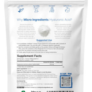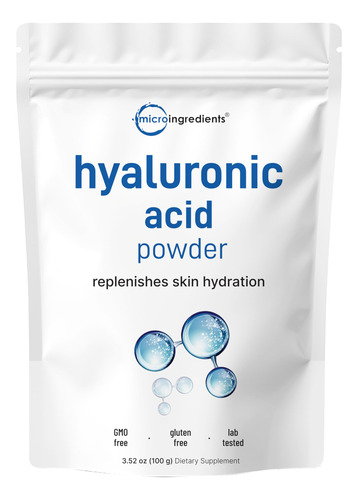 Microingredientes de ácido hialurônico em pó, 100 gramas Baixo peso molecular, grau cosmético Suplementos de hidratação e hidratação da pele Vegano, solúvel em água (em 2 horas)