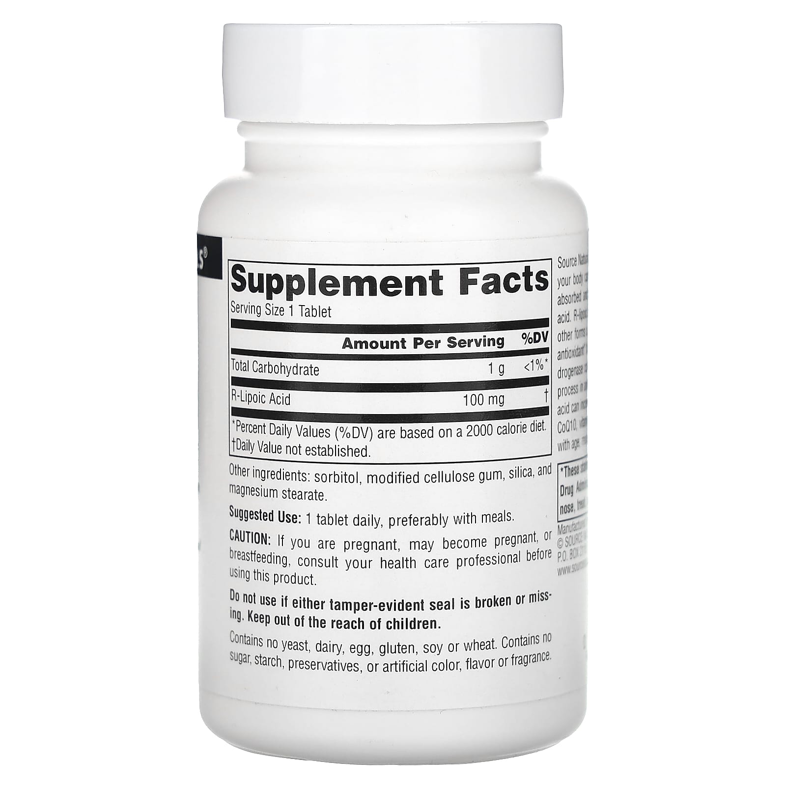 Source Naturals Ácido R-lipóico 100 mg 60 comprimidos – Source Naturals Suplementos Antioxidantes Ácido alfa lipoico Ácido Alfa-Lipóico R.