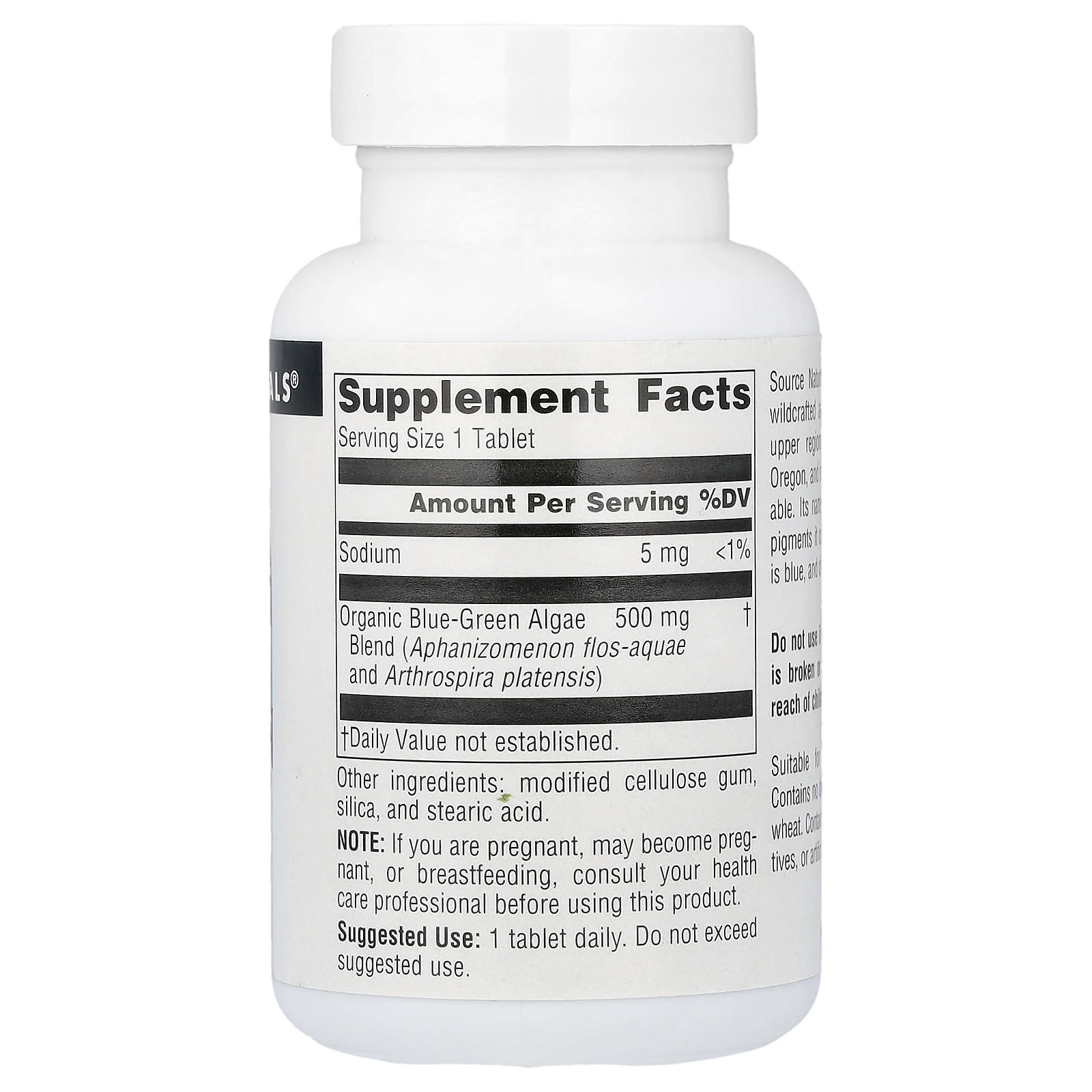 Algas Azuis-Verdes da Source Naturals são silvestres e colhidas nas principais regiões superiores do Alto Klamath Lake, Oregon, e são da mais alta qualidade disponível. Seu nome vem dos dois pigmentos de cor que ele contém: a ficocianina, que é azul, e a clorofila, que é verde.