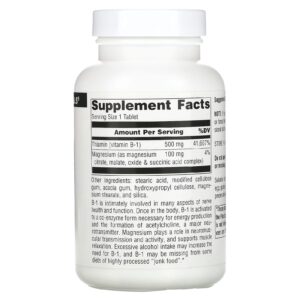 Source Naturals B-1 Alta Potência 500 mg 100 Tabletes – Source Naturals Suplementos Vitaminas Vitamina B Vitamina B1 (Tiamina).