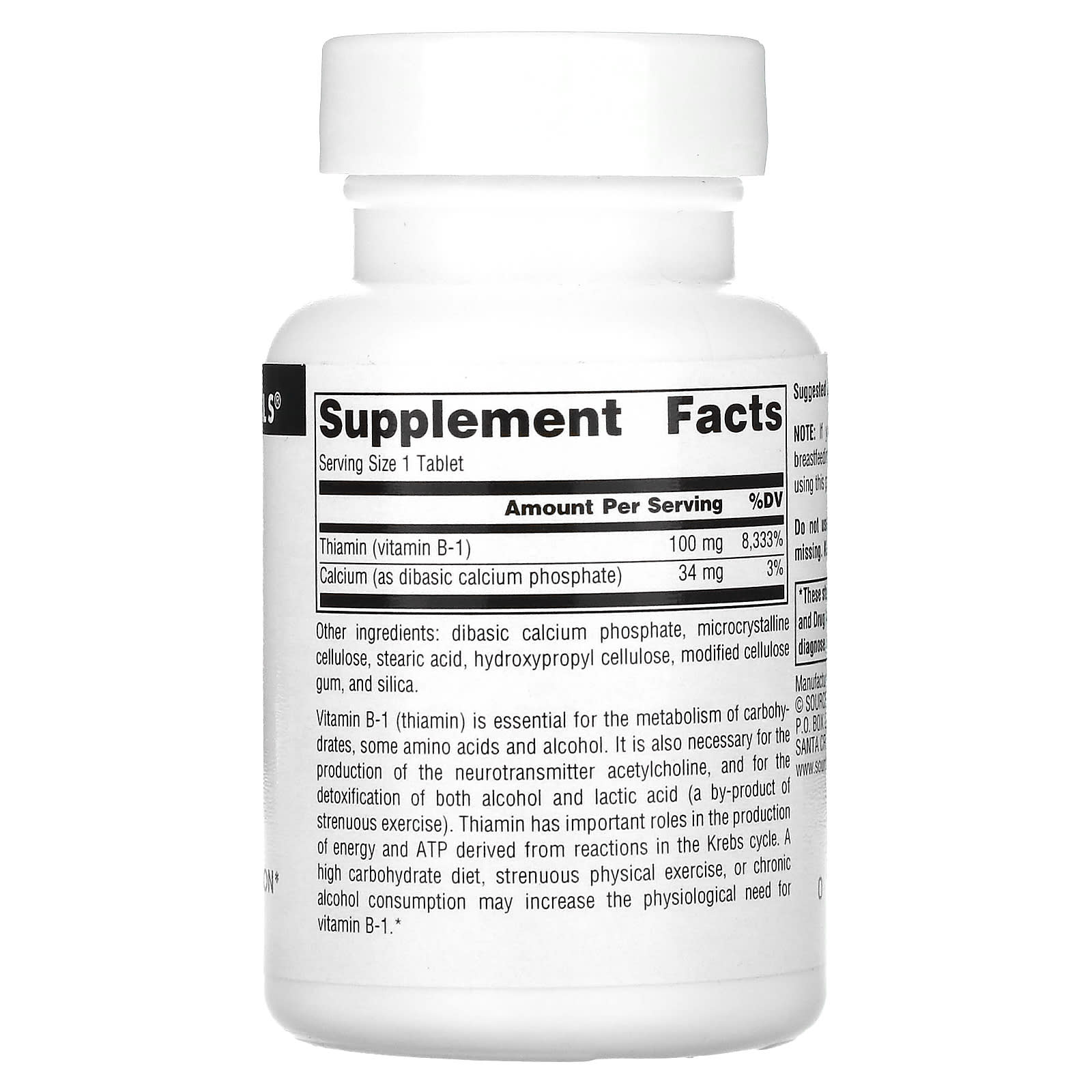 Source Naturals B-1 Tiamina 100 Comprimidos – Source Naturals Suplementos Vitaminas Vitamina B.
