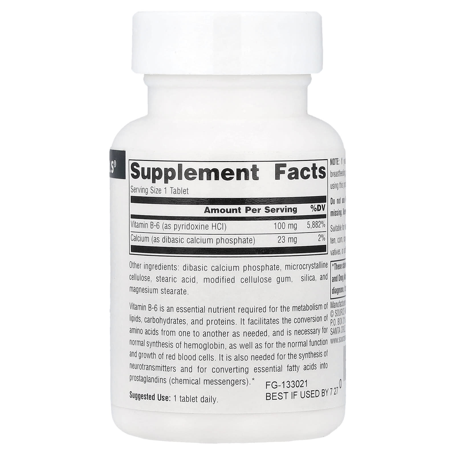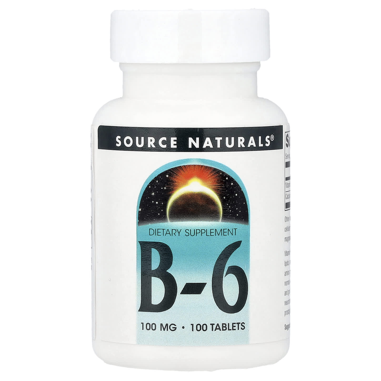 Source Naturals B-6 100 Comprimidos – Source Naturals Suplementos Vitaminas Vitamina B Vitamina B6 (Piridoxina).