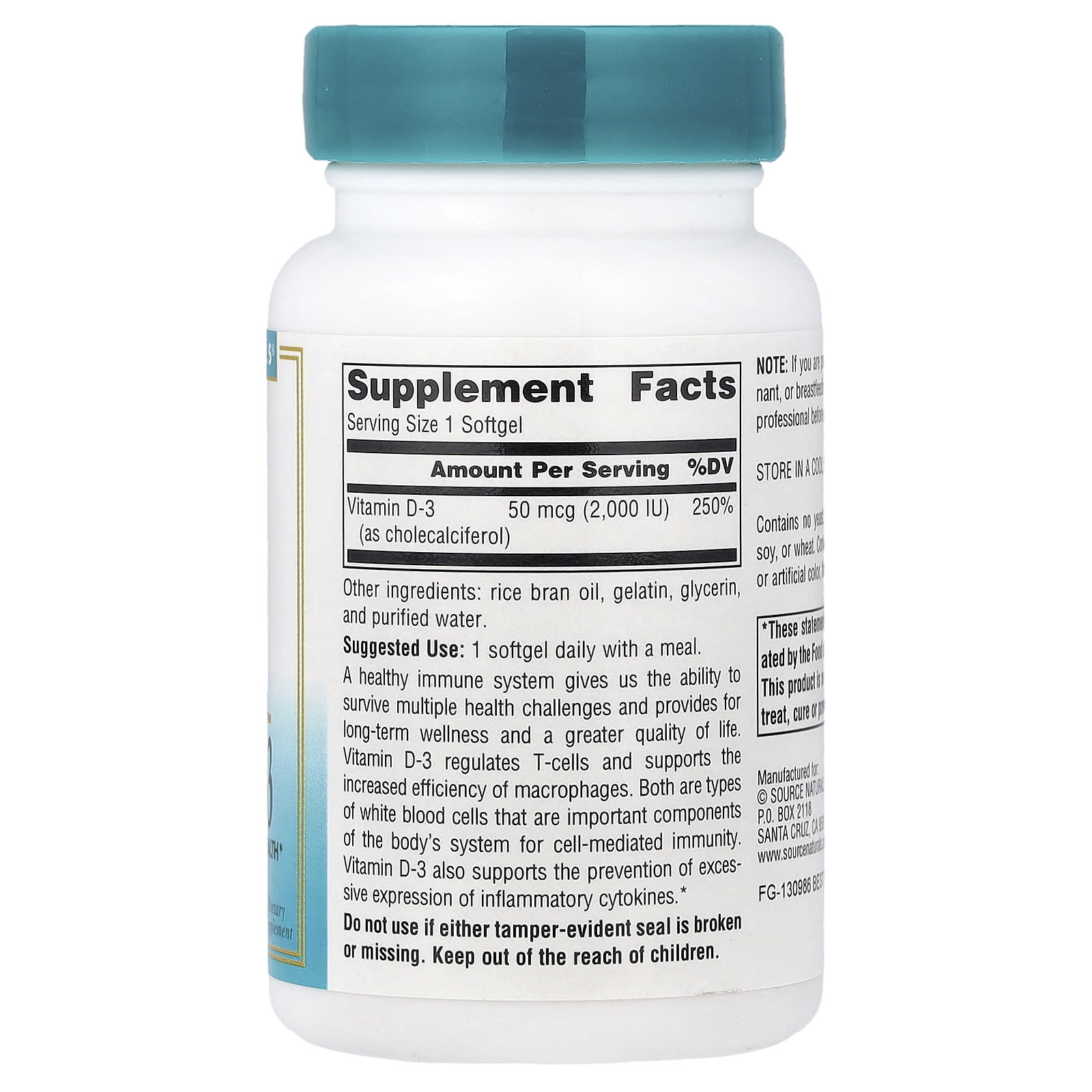 Source Naturals Bem-estar Vitamina D-3 50 mcg (2.000 UI) 200 Cápsulas Softgel – Source Naturals Suplementos Vitaminas Vitamina D.