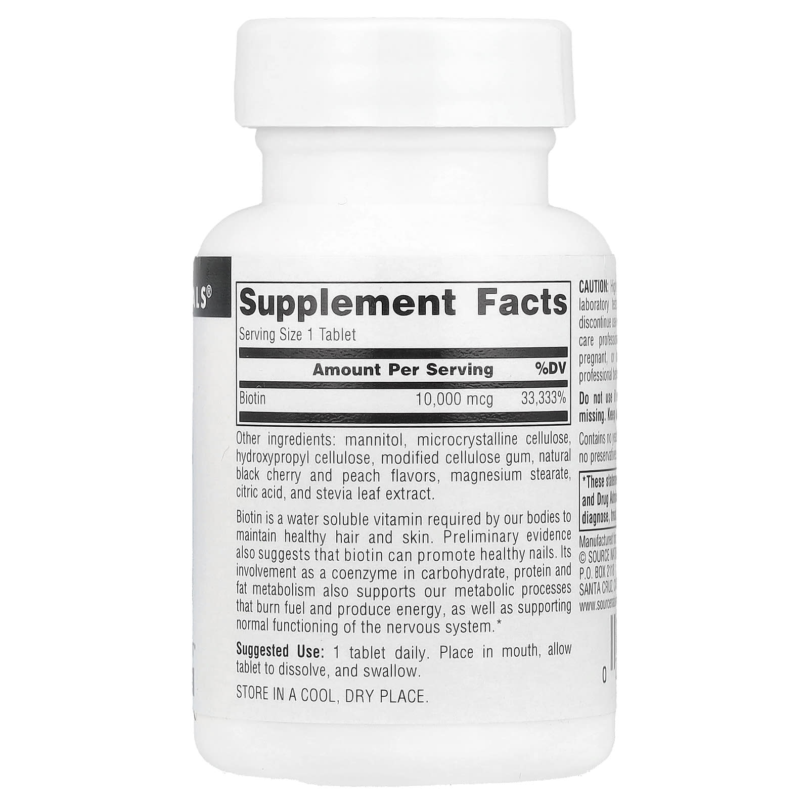 Source Naturals Biotin Fast Melt™ 10.000 mcg 120 Comprimidos – Source Naturals Suplementos Cabelos, Pele e Unhas Vitamina B7 (Biotina).