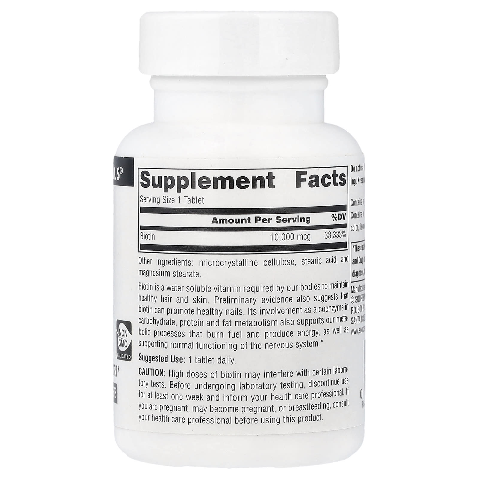 Source Naturals Biotina 10000 mcg 120 Comprimidos – Source Naturals Suplementos Cabelos, Pele e Unhas Vitamina B7 (Biotina).